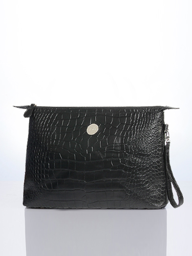 천연가죽에 악어가죽 효과를 준 재질로 블랙컬러의 매트한 가죽재질이 멋스럽습니다.
